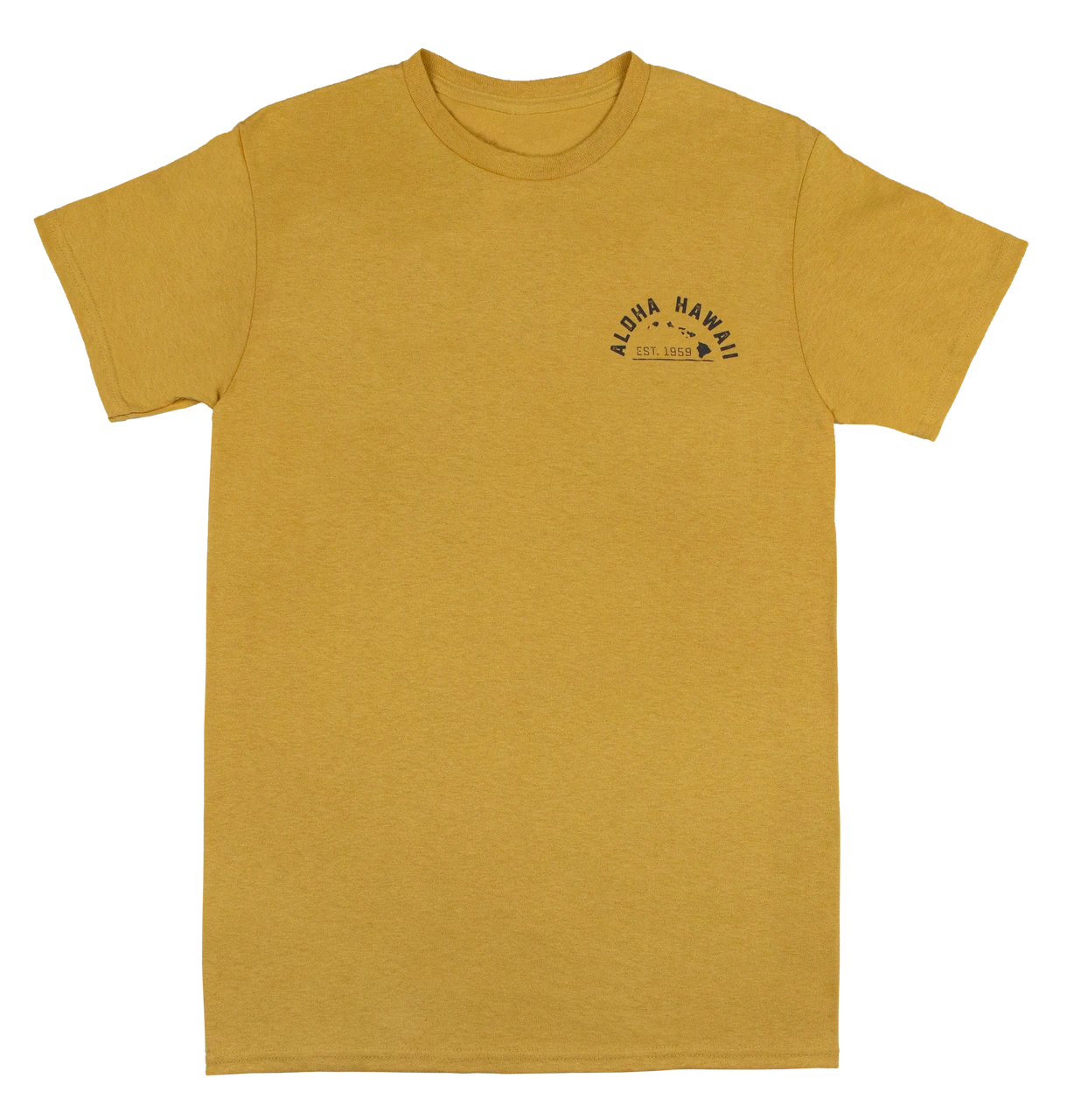 This iconic print features the Hawaiian Islands along with tropical rainforest imagery.