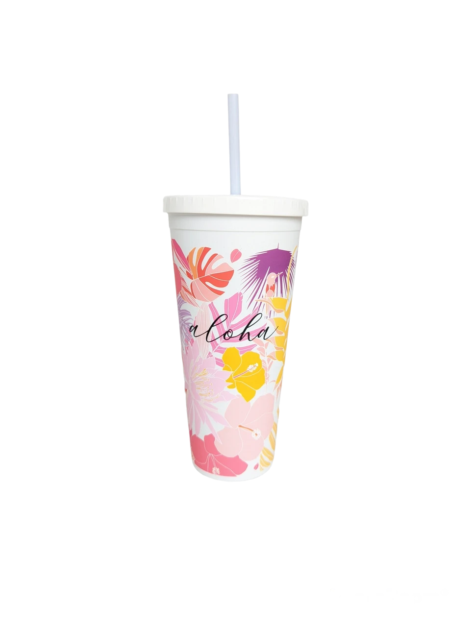These bold and colorful Hawaiian inspired tumblers come with a screw top lid and drinking straw, making these double walled tumblers your ideal drinking companion. They are smooth to the touch with a silicone-like feel which is comfortable to hold and keeps its contents nice and chilled for the perfect next sip.