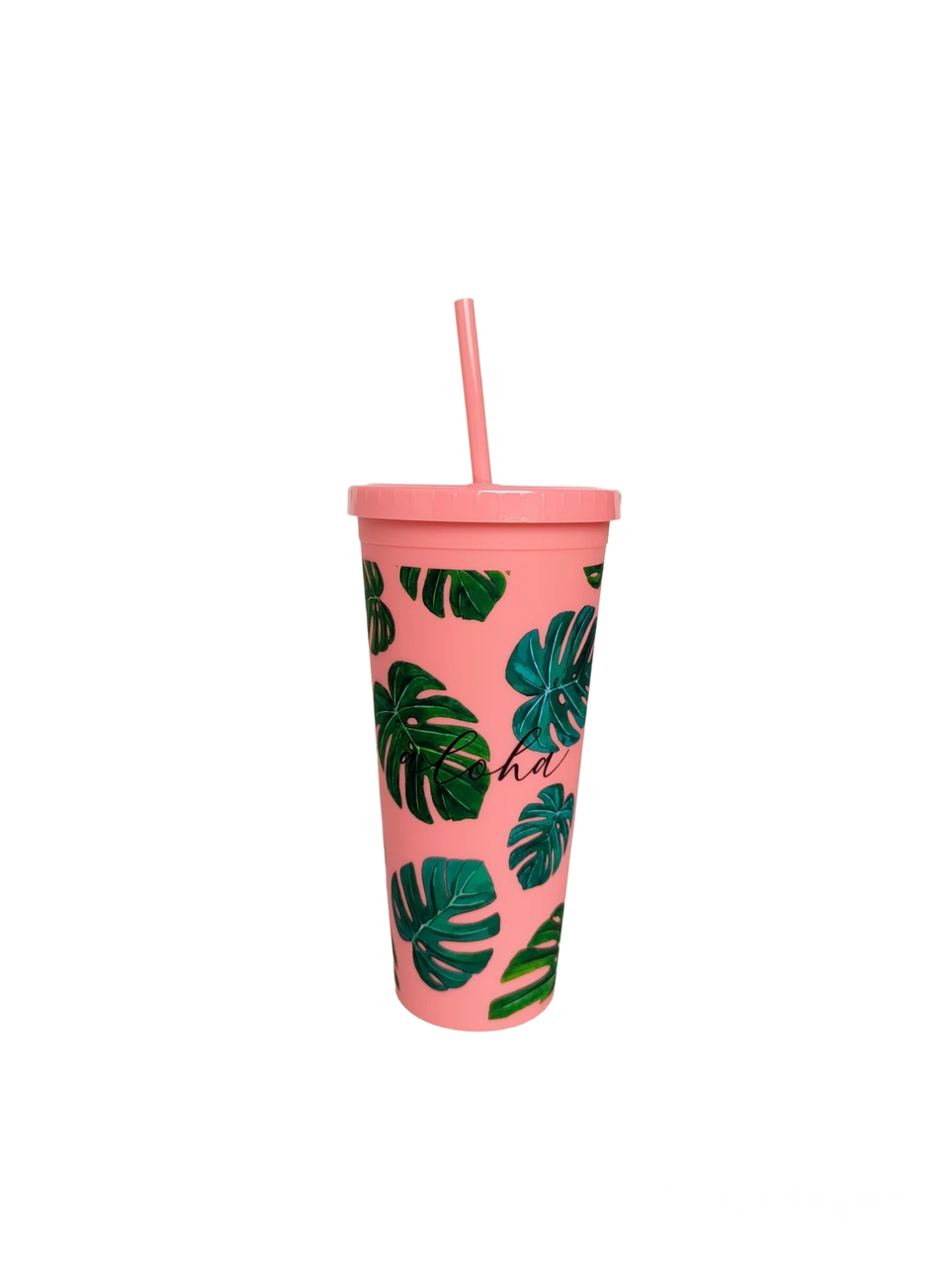 These bold and colorful Hawaiian inspired tumblers come with a screw top lid and drinking straw, making these double walled tumblers your ideal drinking companion. They are smooth to the touch with a silicone-like feel which is comfortable to hold and keeps its contents nice and chilled for the perfect next sip.
