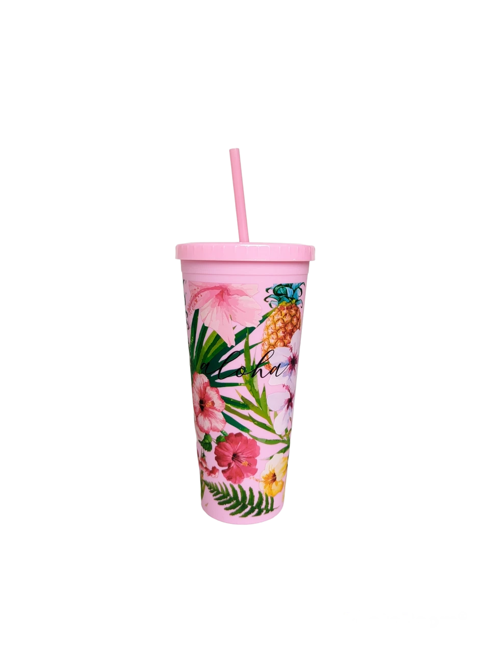 These bold and colorful Hawaiian inspired tumblers come with a screw top lid and drinking straw, making these double walled tumblers your ideal drinking companion. They are smooth to the touch with a silicone-like feel which is comfortable to hold and keeps its contents nice and chilled for the perfect next sip.