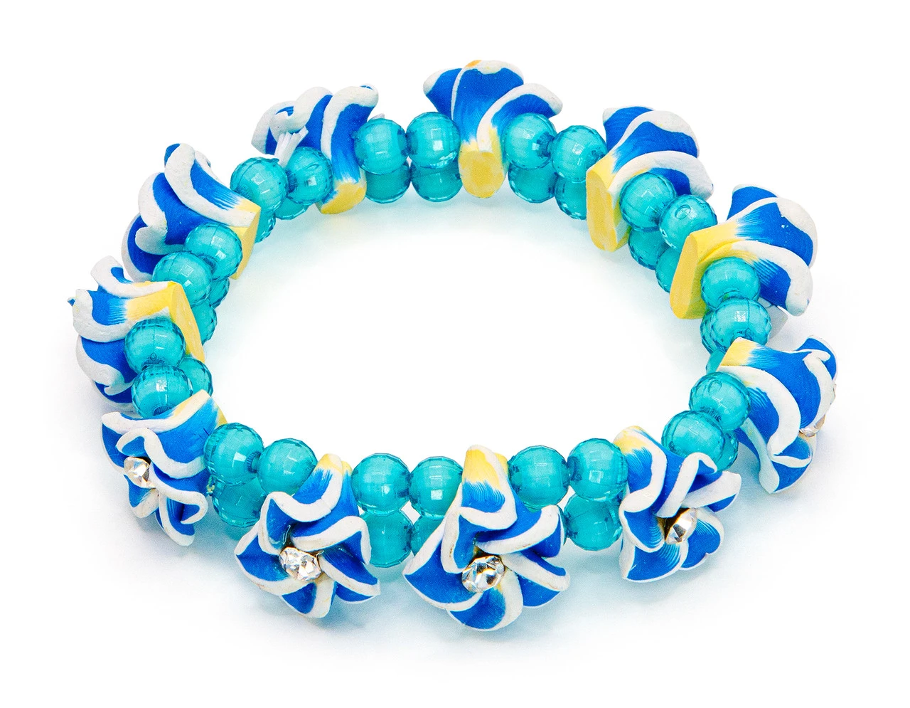 Elastic stretch band adorned with 11 plumeria flowers and beads