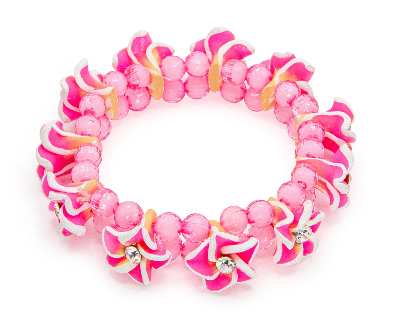 Elastic stretch band adorned with 11 plumeria flowers and beads