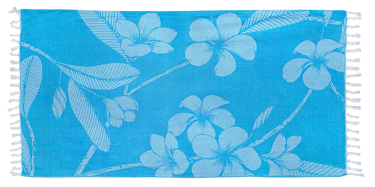 Hawaii Loa Premium Blanket Towel: Turkish Towel – Turquoise Plumeria