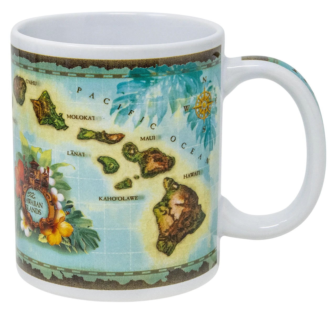 These Hawaiiana inspired coffee mugs are the perfect addition to your morning cup’o’joe! Filled to the brim, these mugs will hold 10 fluid ounces of your favorite drink. Microwave and dishwasher safe, you can’t get any more convenient!