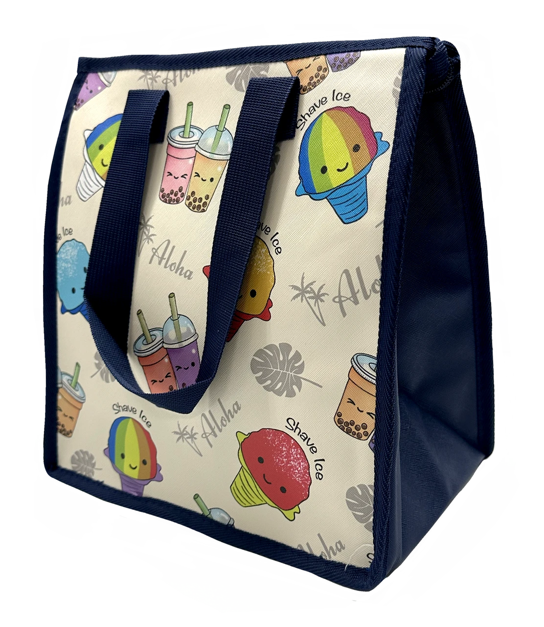This insulated lunch bag made of PU leather has a nylon handle with zipper closure, and is lined with aluminum foil that has a 6” gusset to accommodate larger containers. The waterproof material makes it very easy to wipe down and clean.