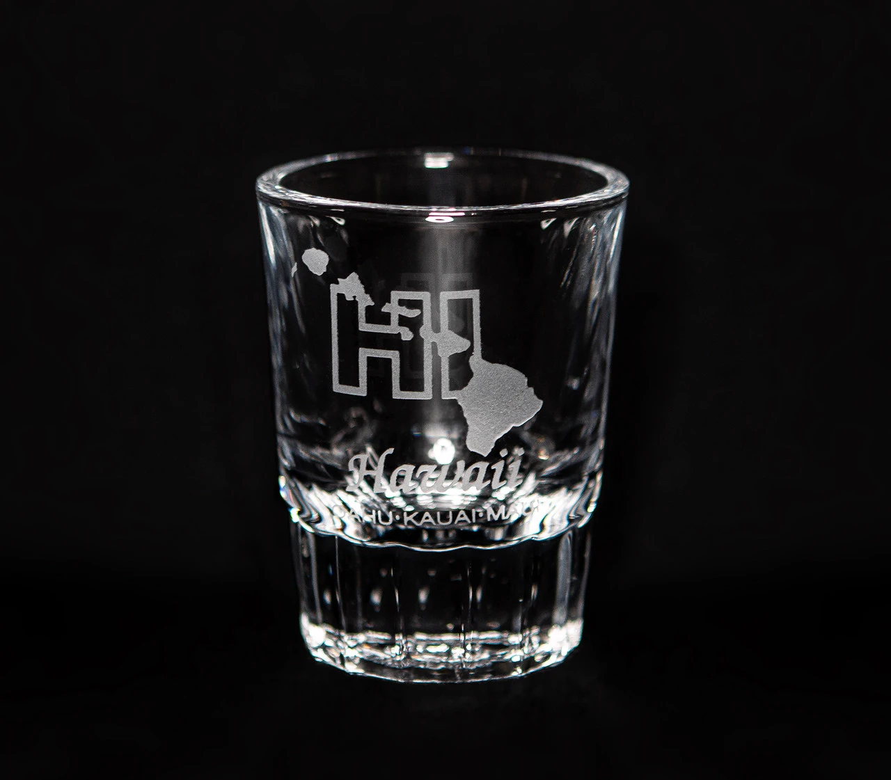 Top quality and classy 2oz. shotglass professionally deep etched with Hawaiian-inspired design.