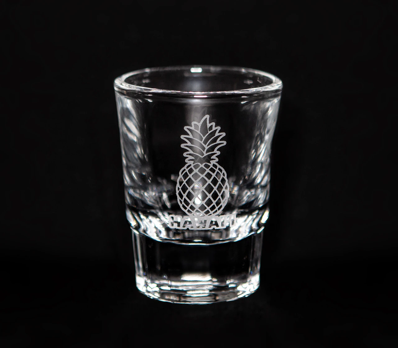 Top quality and classy 2oz. shotglass professionally deep etched with Hawaiian-inspired design.