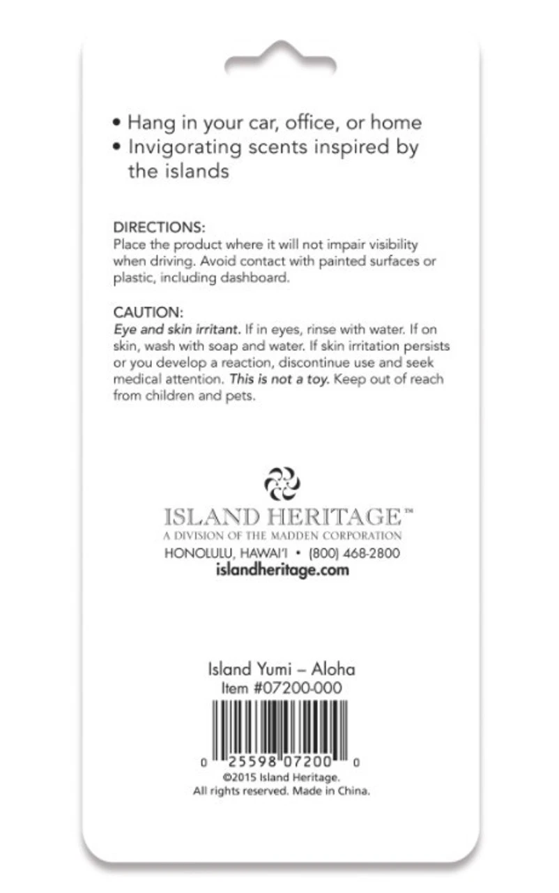 Island Heritage Air Freshener – Island Yumi – Aloha (Jasmine Scent)