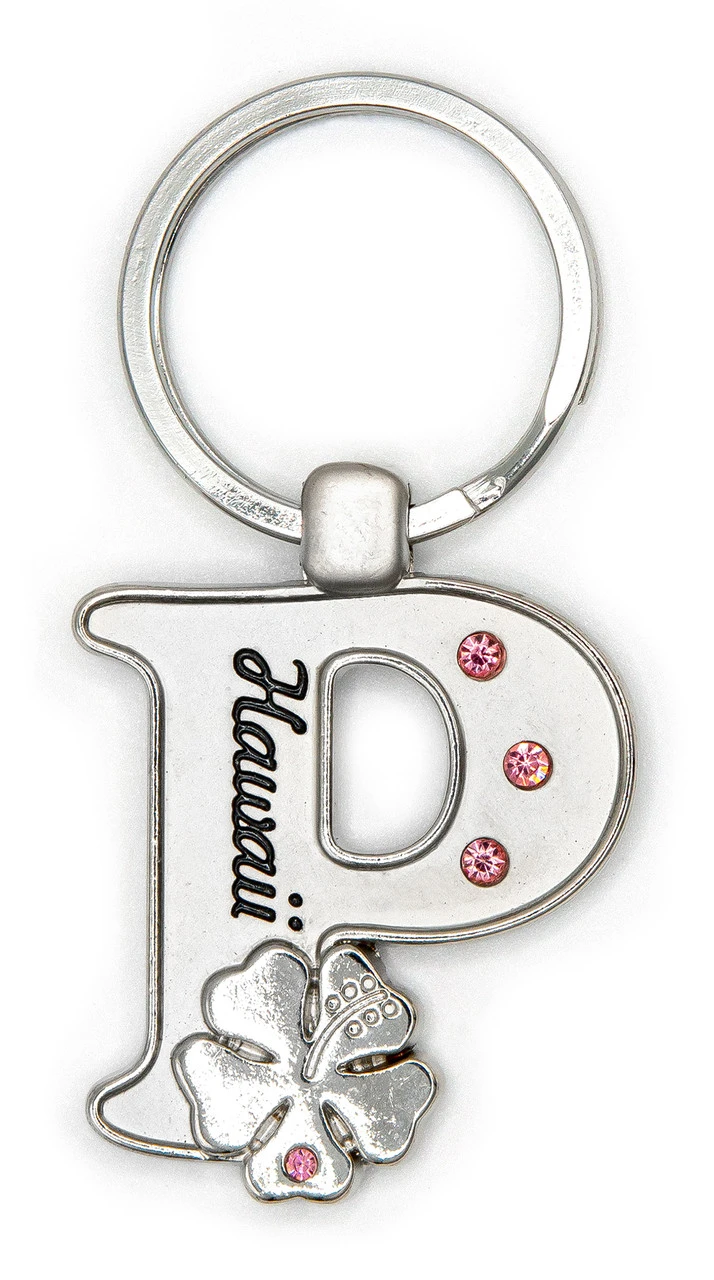Matte metal keyring adorned with pretty stones and a hibiscus flower.