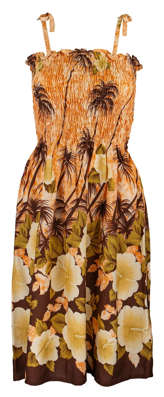Ladies Short Elastic Tube Dress – Hibiscus Palm: Orange