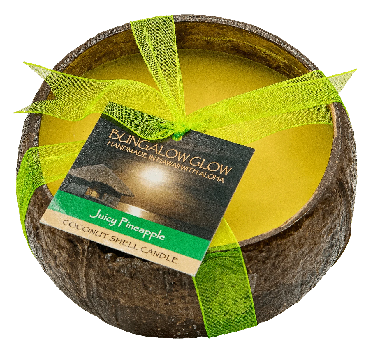 Handcrafted and made in Hawaii, these beautifully polished coconut shells are filled with a creamy 100% US soy blend infused with tropical oils for a beautiful finish and even burn.