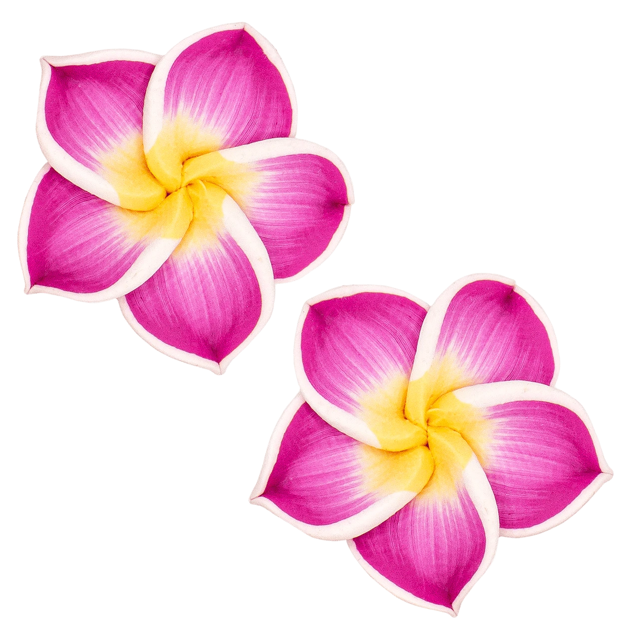Handcrafted clay earring in the shape of a Plumeria flower