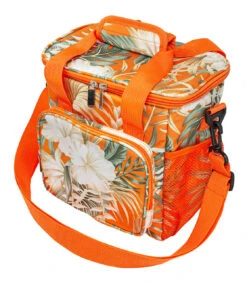Collapsible cooler with a top flap with zip and grip closure which can fit up to 12 cans.