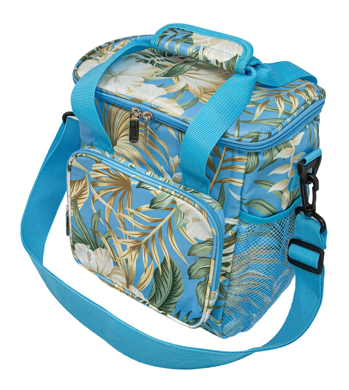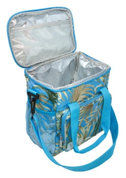 Collapsible cooler with a top flap with zip and grip closure which can fit up to 12 cans.