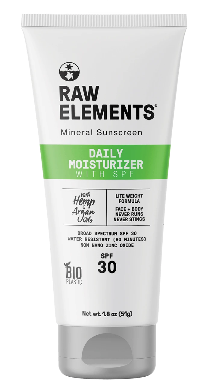 Raw Elements Daily Moisturizer SPF 30 is Certified Non GMO Verified project approved, Leaping Bunny Cruelty Free, and the only active ingredient is 20% non- nano zinc oxide. It is a great , year round , daily sunscreen.