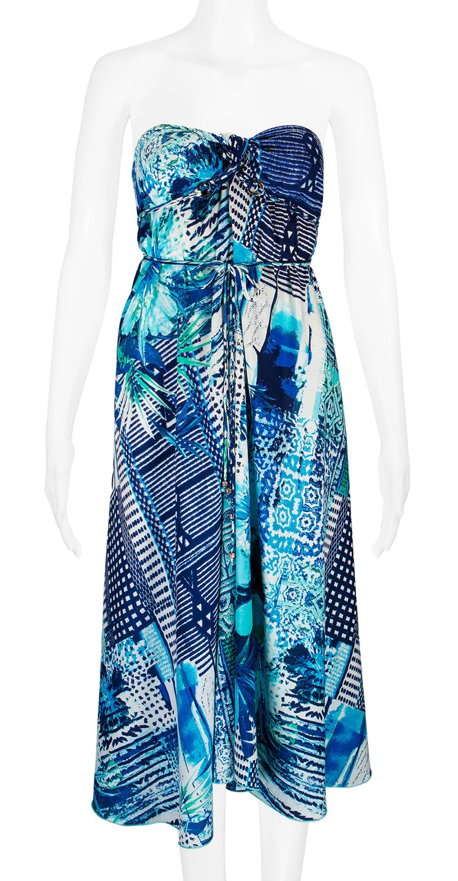 Convertible styling for versatile wear this maxi dress can be worn as a halter, side shoulder dress, or tube dress.