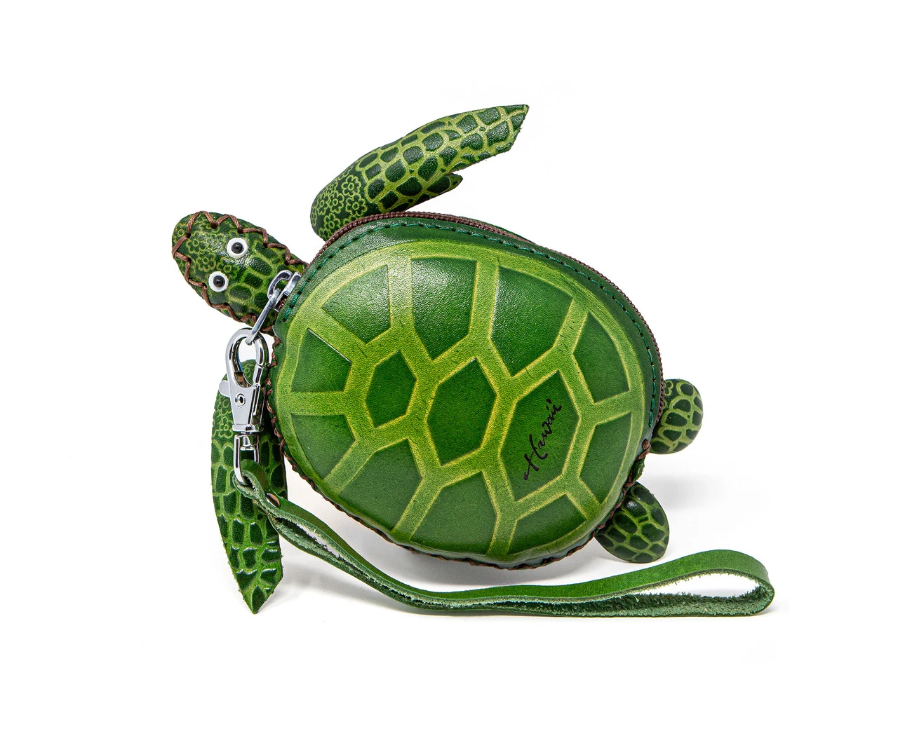Cute animal leather pouches with a zipper closure, “Hawaii” stamp, and detachable wrist strap.