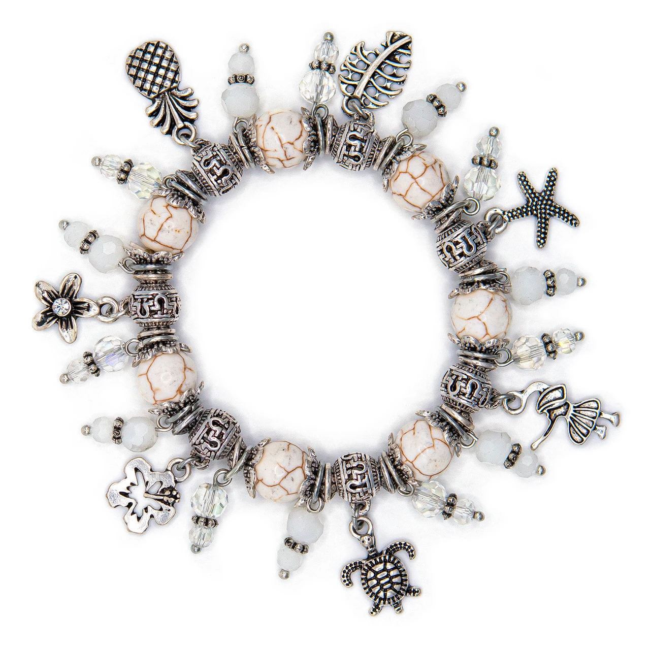 Solid Tone Stone Beads Charm Bracelet By Aloha 808: White