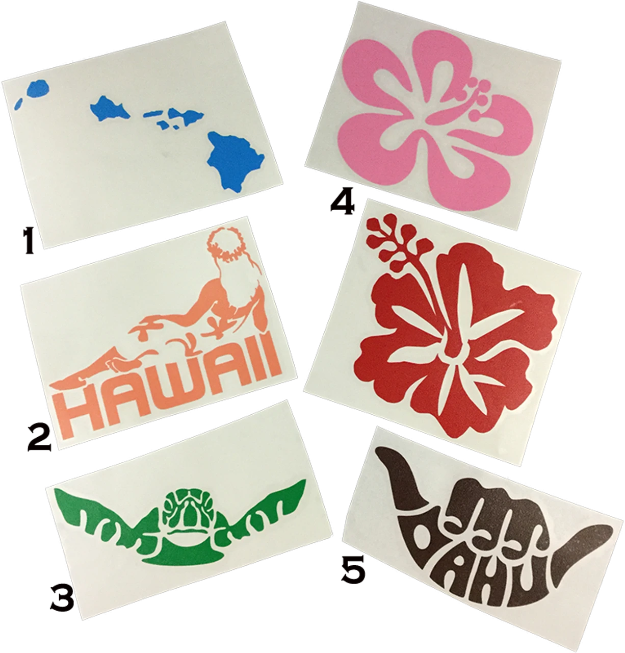 Add an exotic Hawaiian touch to any number of flat surfaces with these high quality vinyl stickers.