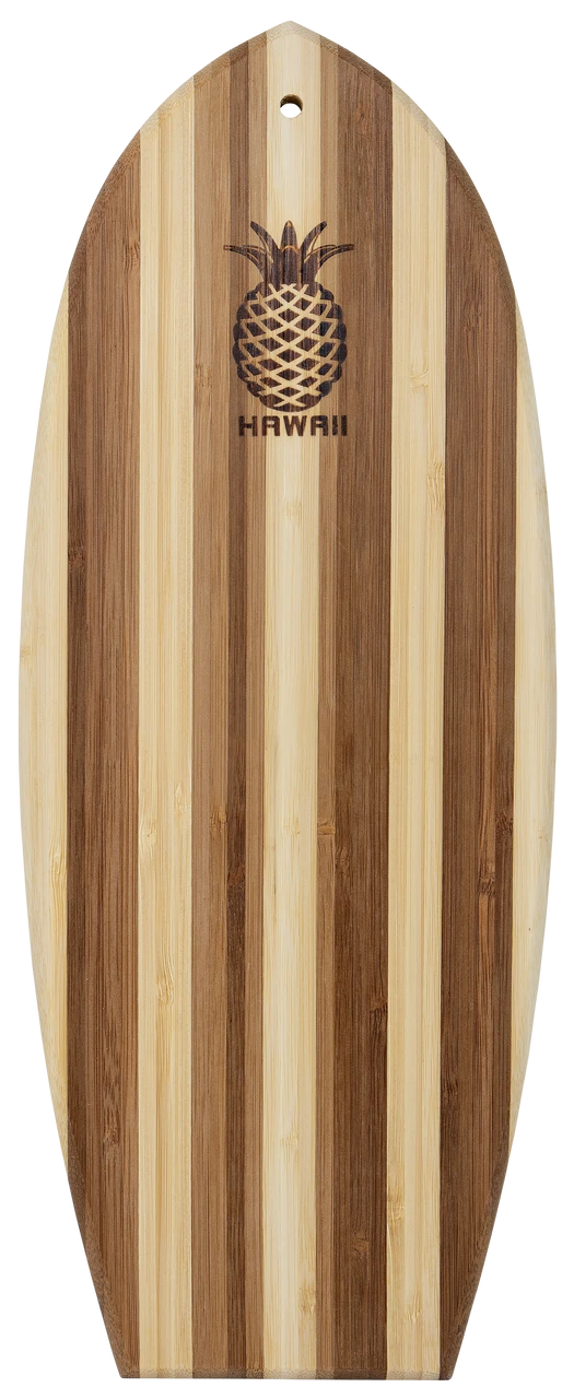 Tropical Bamboo Surfboard Shaped Cutting Board: Pineapple Stamp