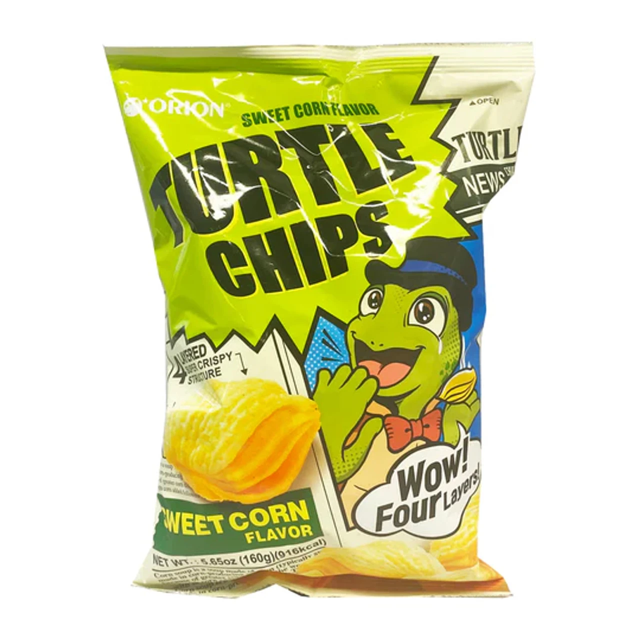 Turtle chips are characterized by rich texture and double flavor because they create the feeling of eating several chips with only one bite. When you slowly chew your sweets, it maximizes crispiness in your mouth and the resembling turtles are also the alluring features of Turtle chips!