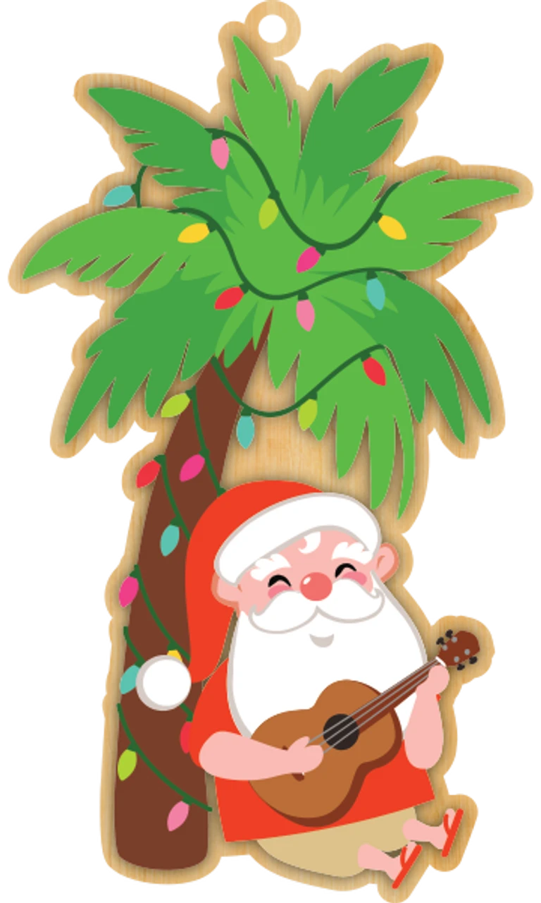Wooden Ornament: Ukulele Santa
